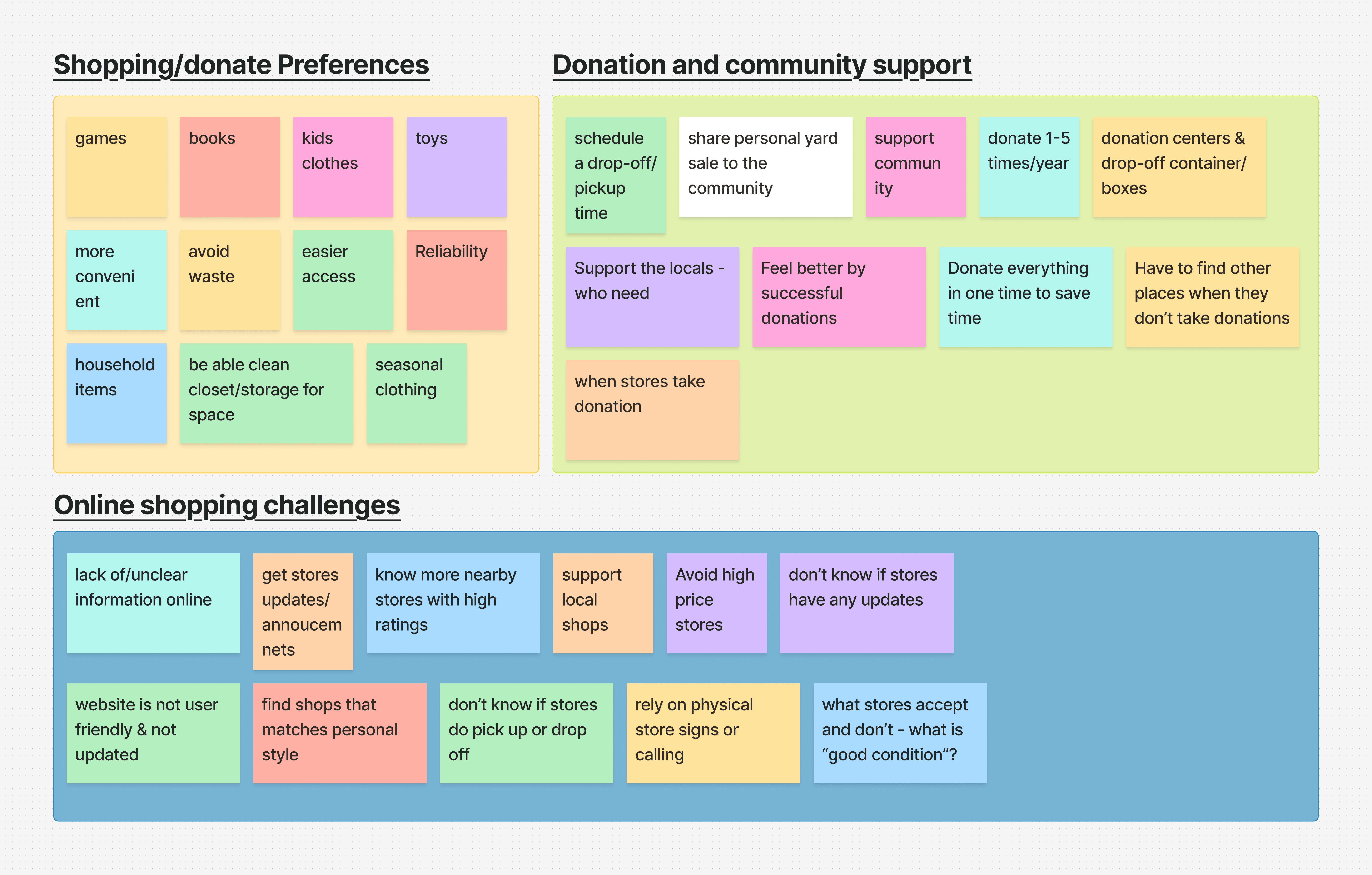 Through affinity mapping, we identified three core findings: convenient scheduling drives action, clear standards reduce friction, and centralized discovery expands impact, helping donors give more efficiently, avoid rejections, and find the best nearby donation options.