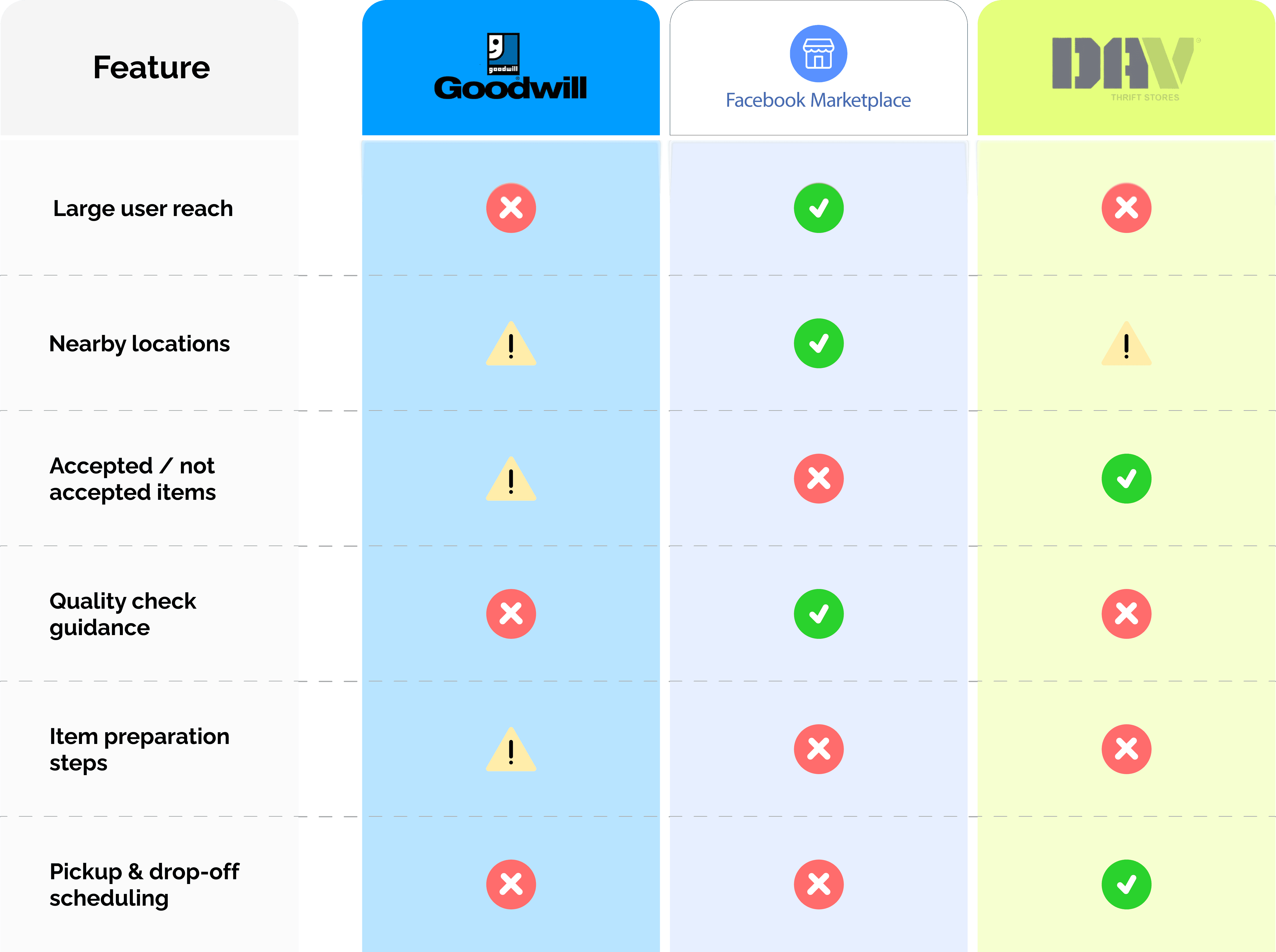 Users can’t easily compare donation options. If one store is full, they don’t know where else to go.